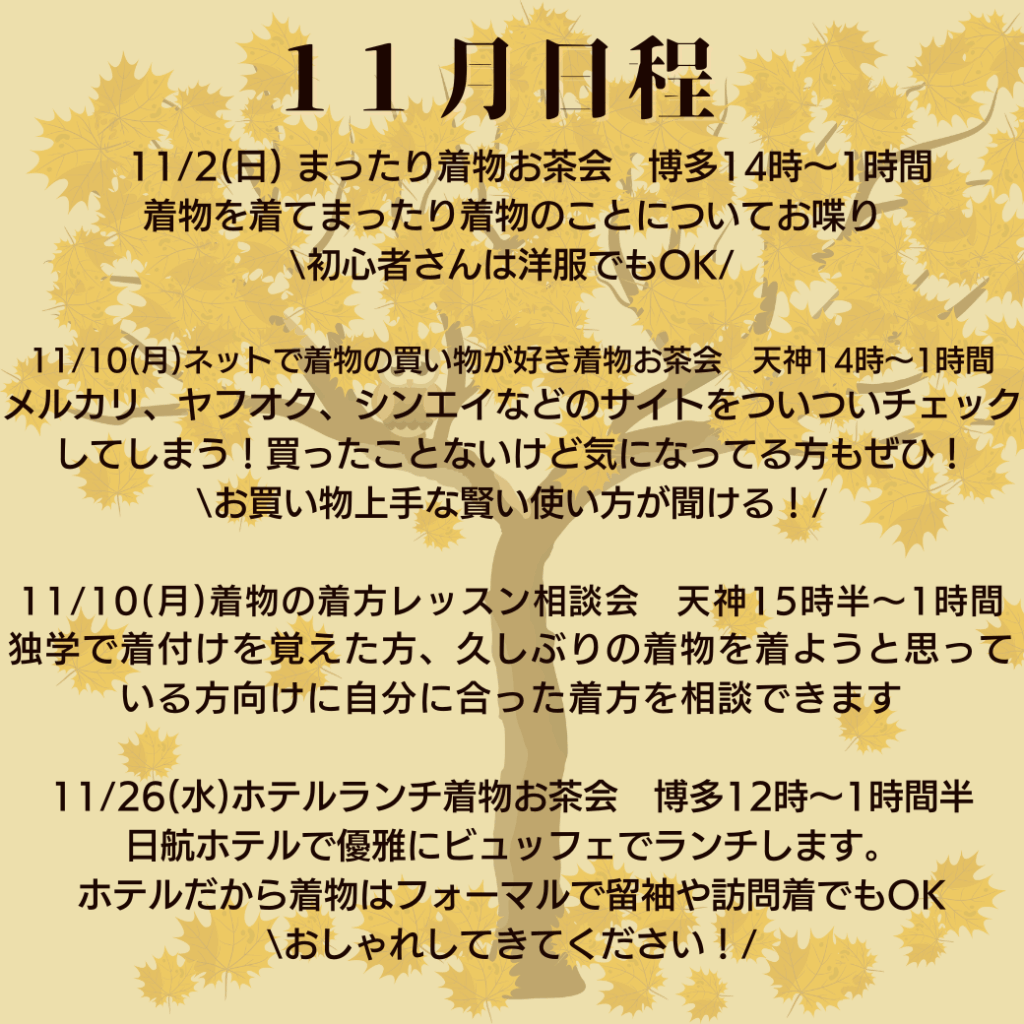 11月の着物お茶会&レッスンのご案内🍂